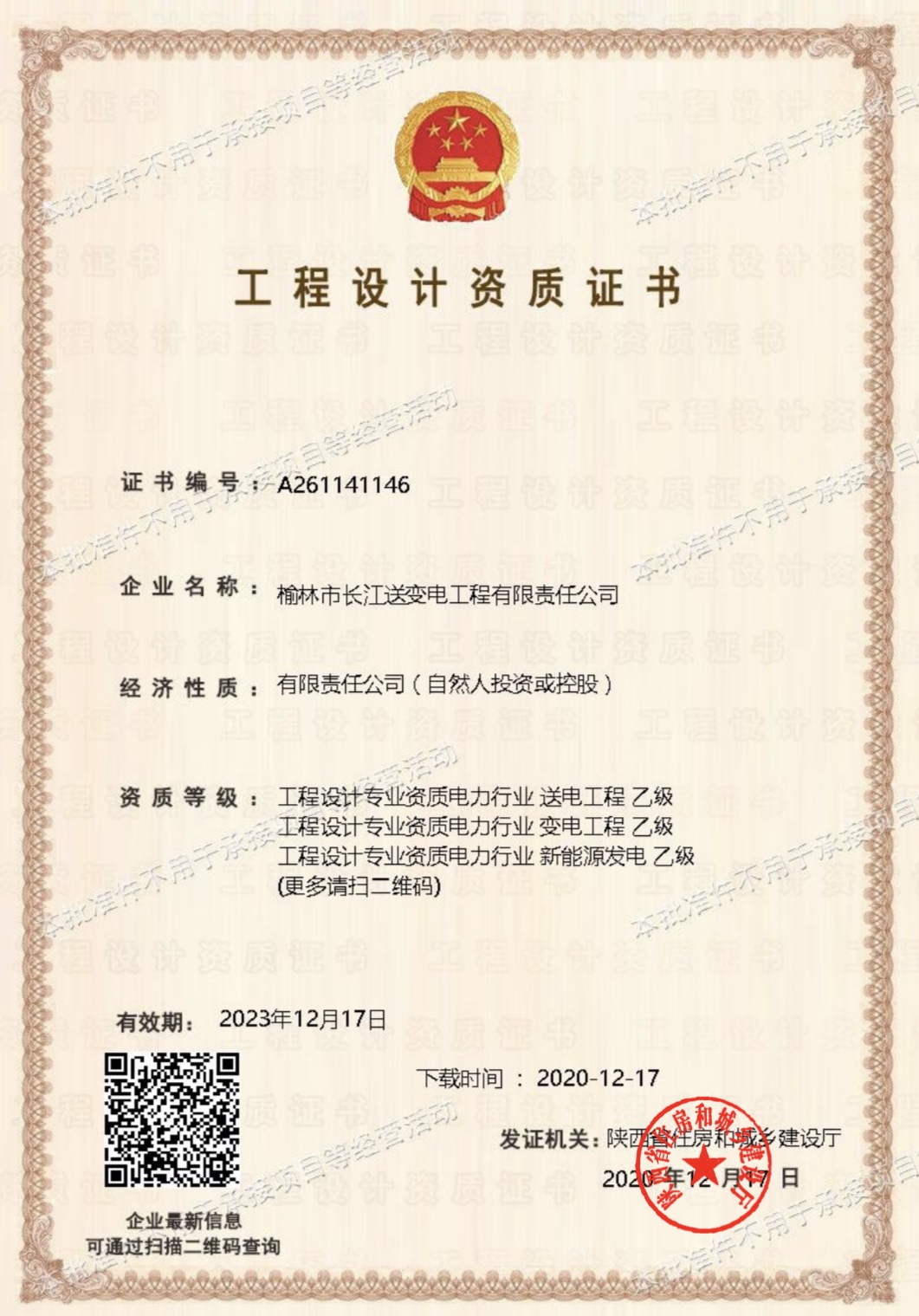 榆林市長(zhǎng)江送變電站有限公司資質(zhì)證書(shū)