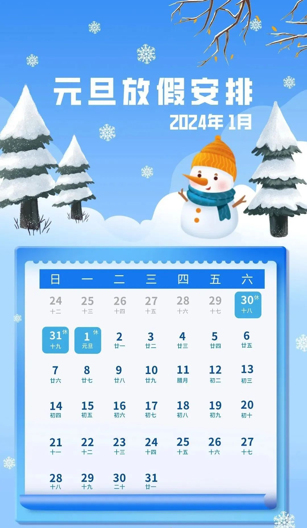 2023年12月30日(星期六)至2024年1月1日(星期一),共3天。